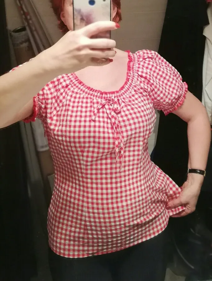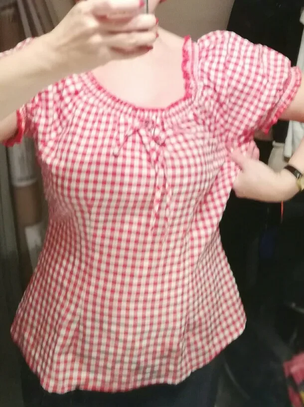 Belle Poque Women Blouse Summer Two-Way Tops Crew Neck/Off Shoulder Short Raglan Sleeves Plaided Shirt Casual Sweet New Female