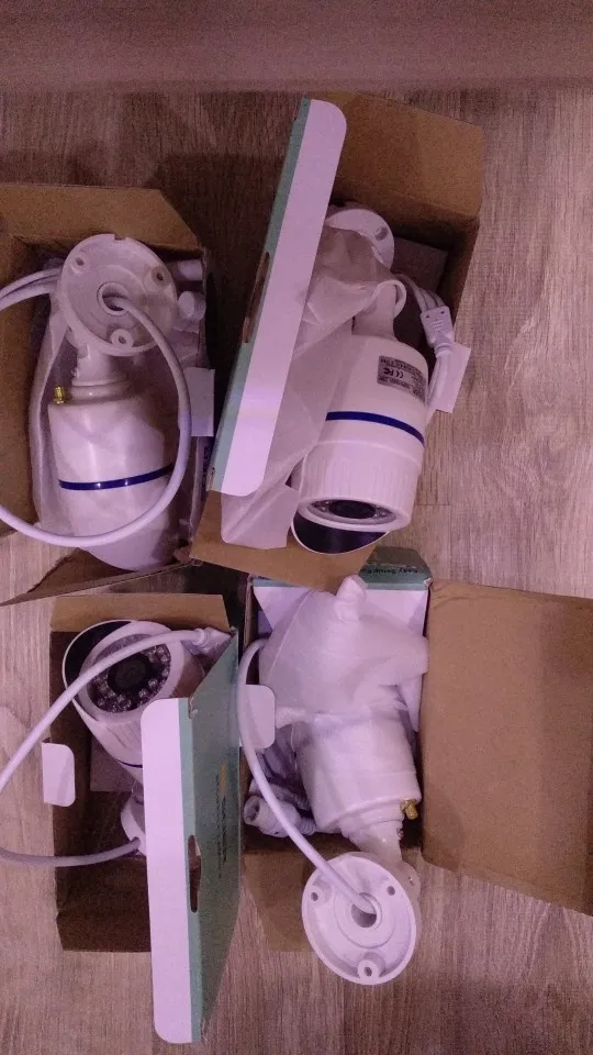 Arrived a few days late, but still quick. All three cameras - image, sound, night vision working. Both the ac adapter and the cable connector have LEDs to show operation, a handy feature. They also connect to an ntp time server on their own for accurate time tagging, another unexpected and helpful feature. They are not fast to respond to moving objects, and a bit noisy in low light, but then they are very inexpensive. Great value for the money.