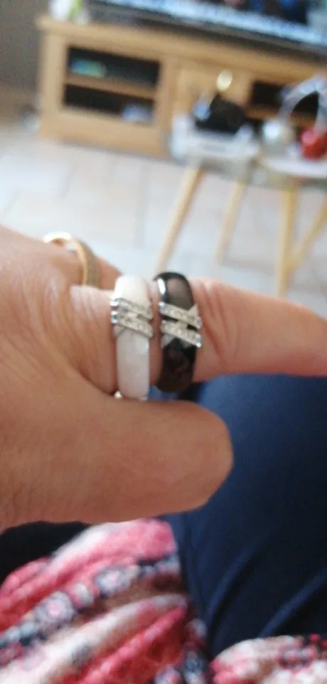 Best 6mm High Quality Black And White Simple Style Two Line Crystal Ziron Ceramic Rings For Women Fashion Jewelry Gift