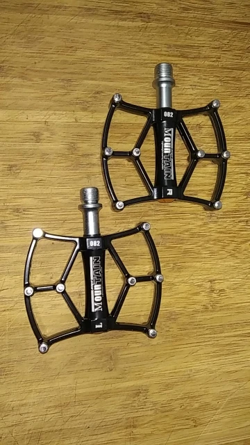 Great value pedals. No bearing noise. Dust seal preventing smooth rotation when spun by hand. very pleased with both sets ordered.