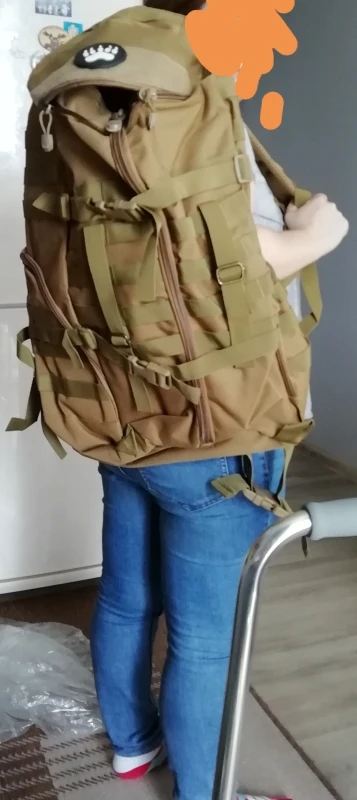It is huge, surprisingly comfortable if you adjust it correctly and put something stiff in the back compartment. Not really for tall people