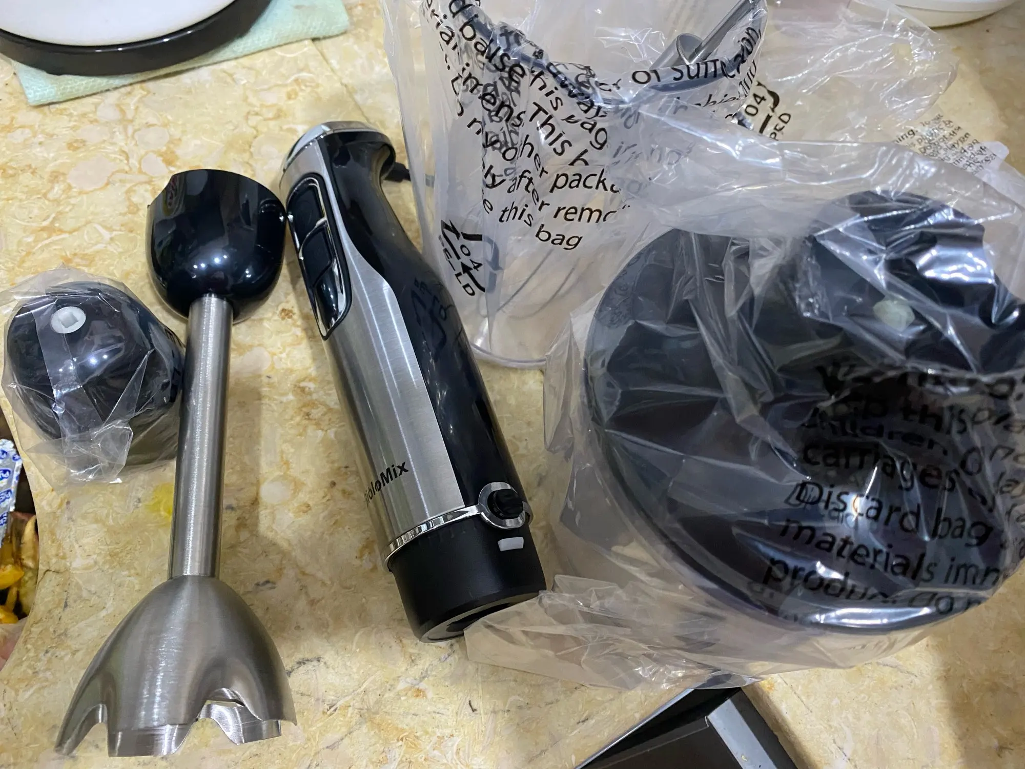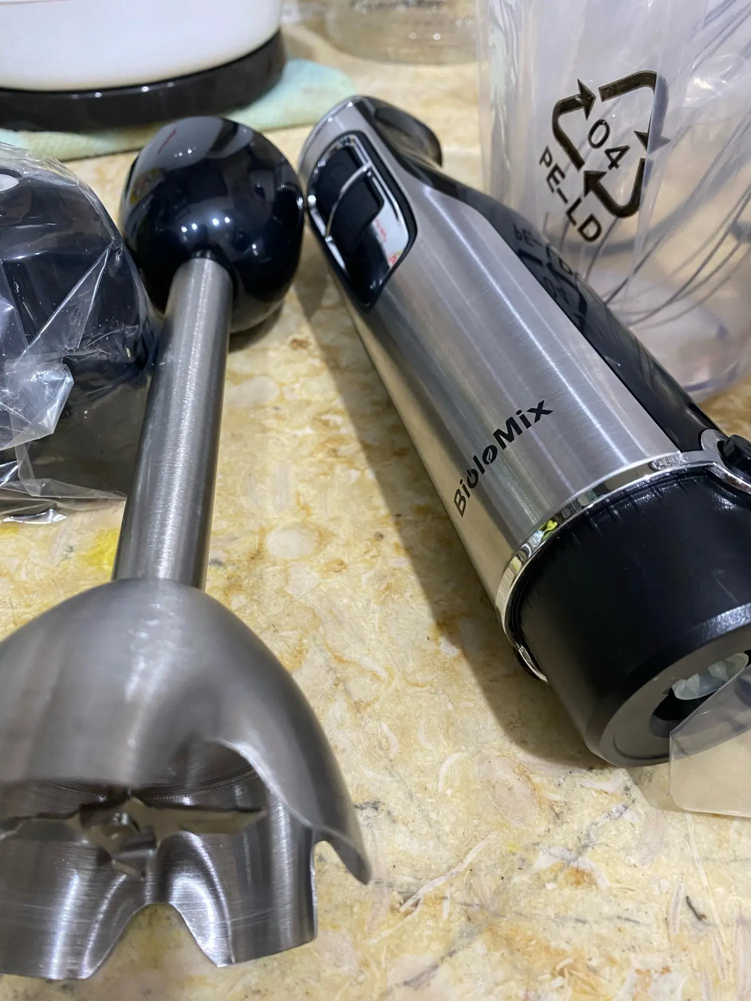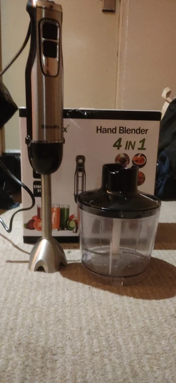BioloMix 4 in 1 High Power 1200W Immersion Hand Stick Blender Mixer Includes Chopper and Smoothie Cup Stainless Steel Ice Blades