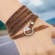 Black/Brown Vintage Bohemian style jewelery multilayer wrap genuine leather bracelet for men and women Embossing letter bracelet