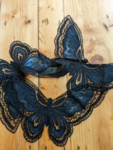 Black Butterfly Fabric Wedding Gown Appliques Embroidered Collar Gothic Sew On Patches For Dress DIY Decoration
