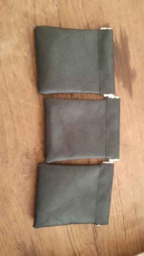 Shipping was on time to SG, the pouch material feels like nylon straps tough, i like it. looks sleek. worth the money. the hinges are stiff that's a good thing will keep your money or items safe won't sleep out.