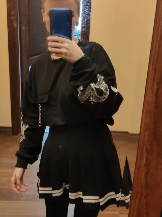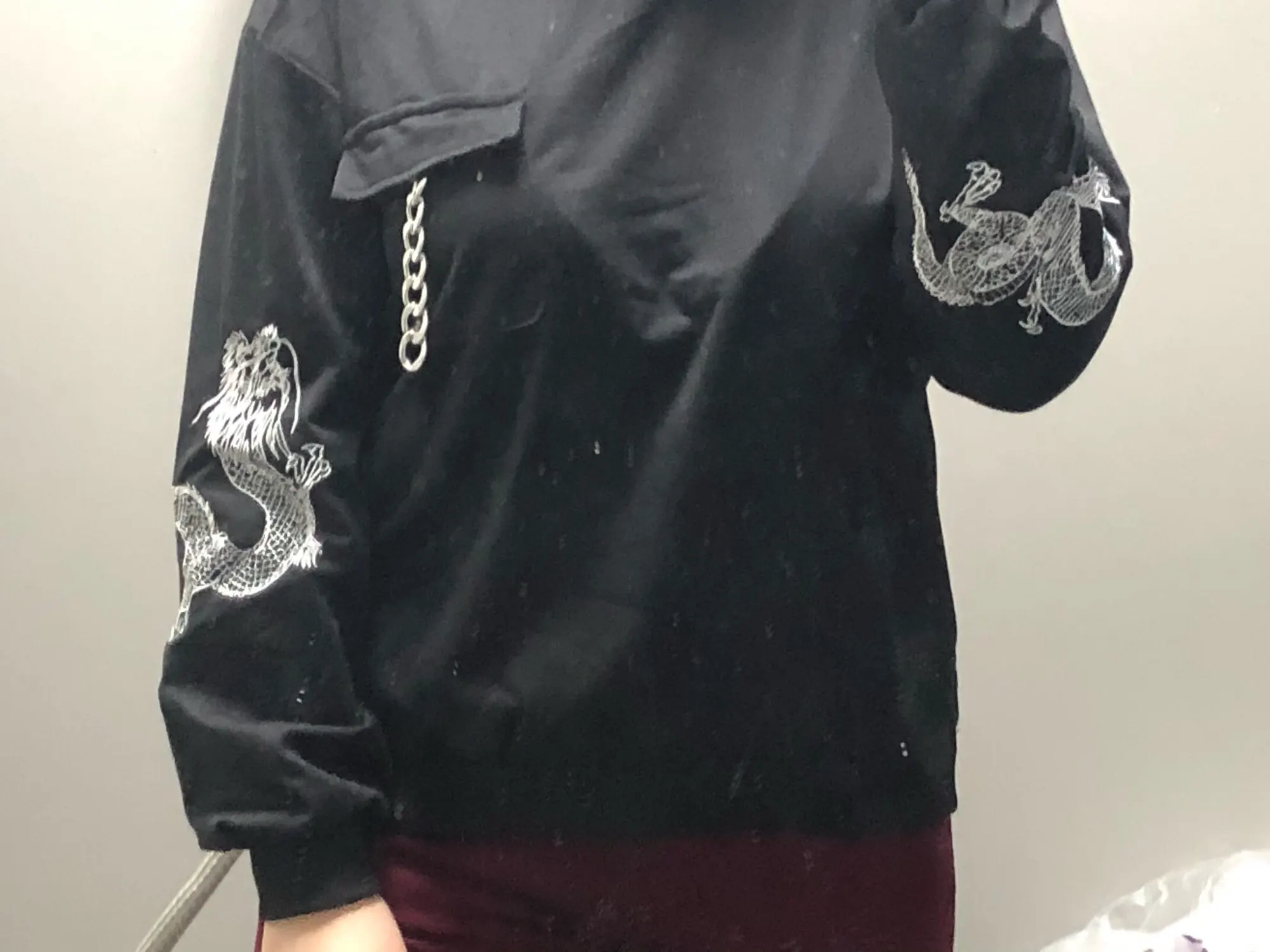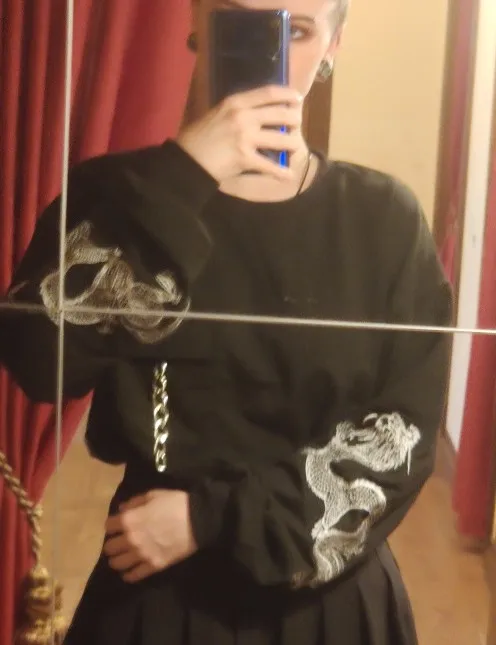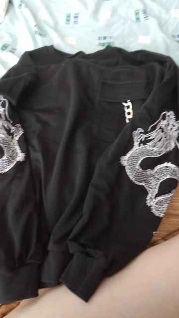 The material is soft and thick, very comfortable. The embroidery on the sleeves is very nice! There were a few loose threads but nothing too bad that couldn't be fixed.