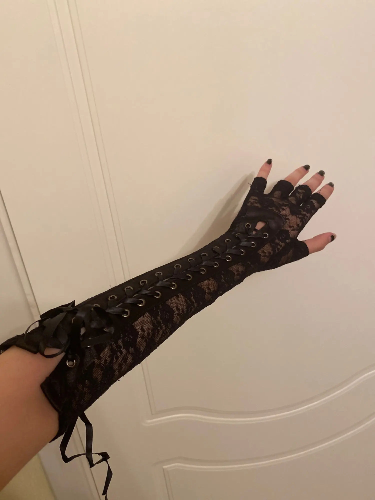 Black Lace Up Fingerless Gloves Elbow steampunk for Womens Costume Party Arm Warmer Sexy Mittens Clubwear Cosplay Accessories