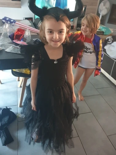 Black Maleficent Witch Costume Kid Girls Tutu Dress Ankle Length Halloween Devil Cosplay Clothes for Child Party Photo Prop Gift