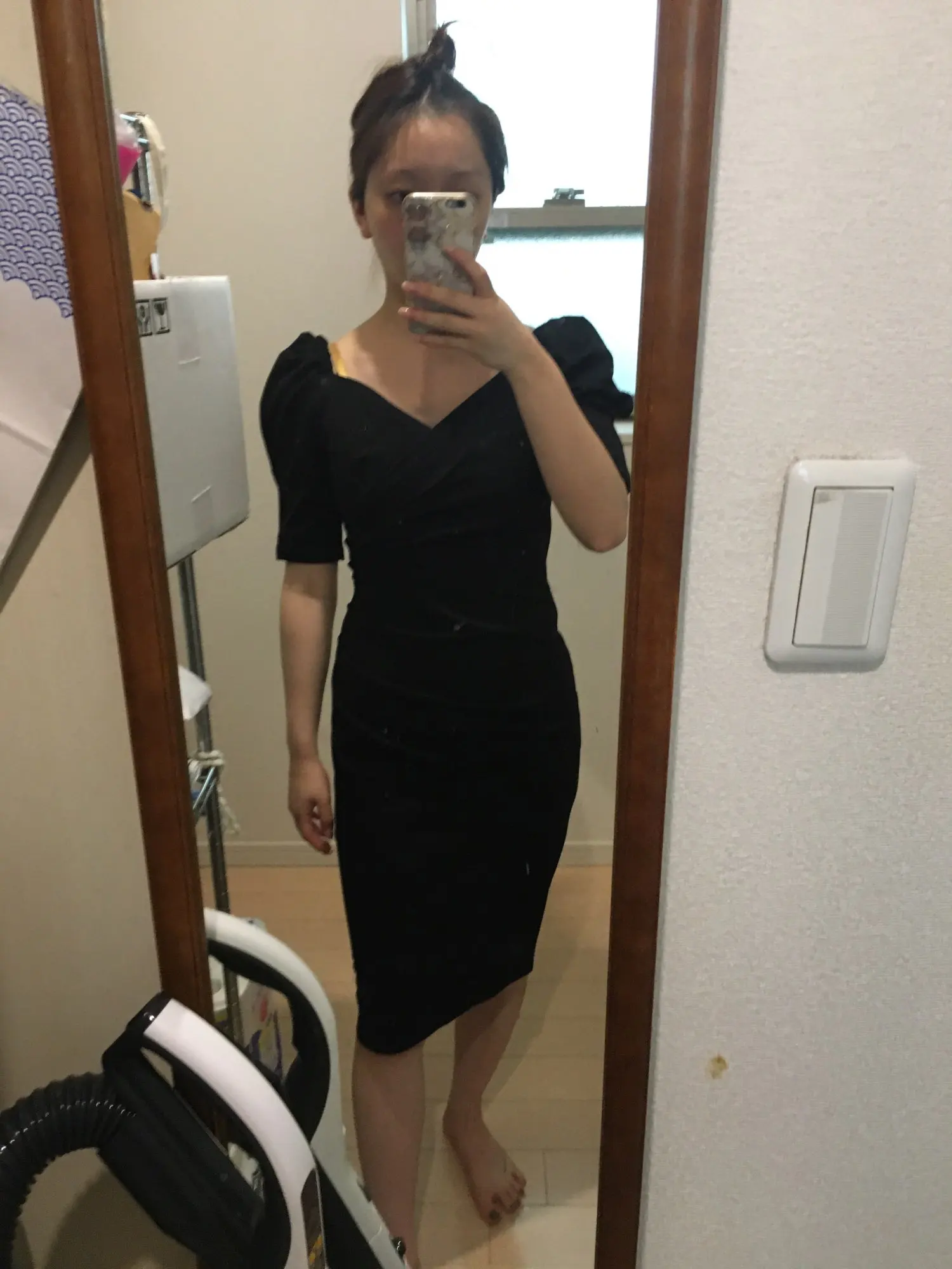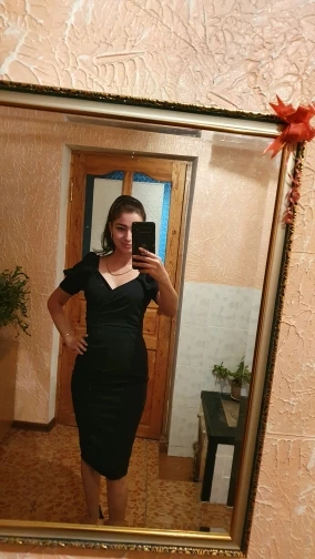 Black Pencil Office Lady Dress 2022 Spring Korean Version Simple V-Neck Puff Sleeve High Waist Tight Elegant Party Dress Women