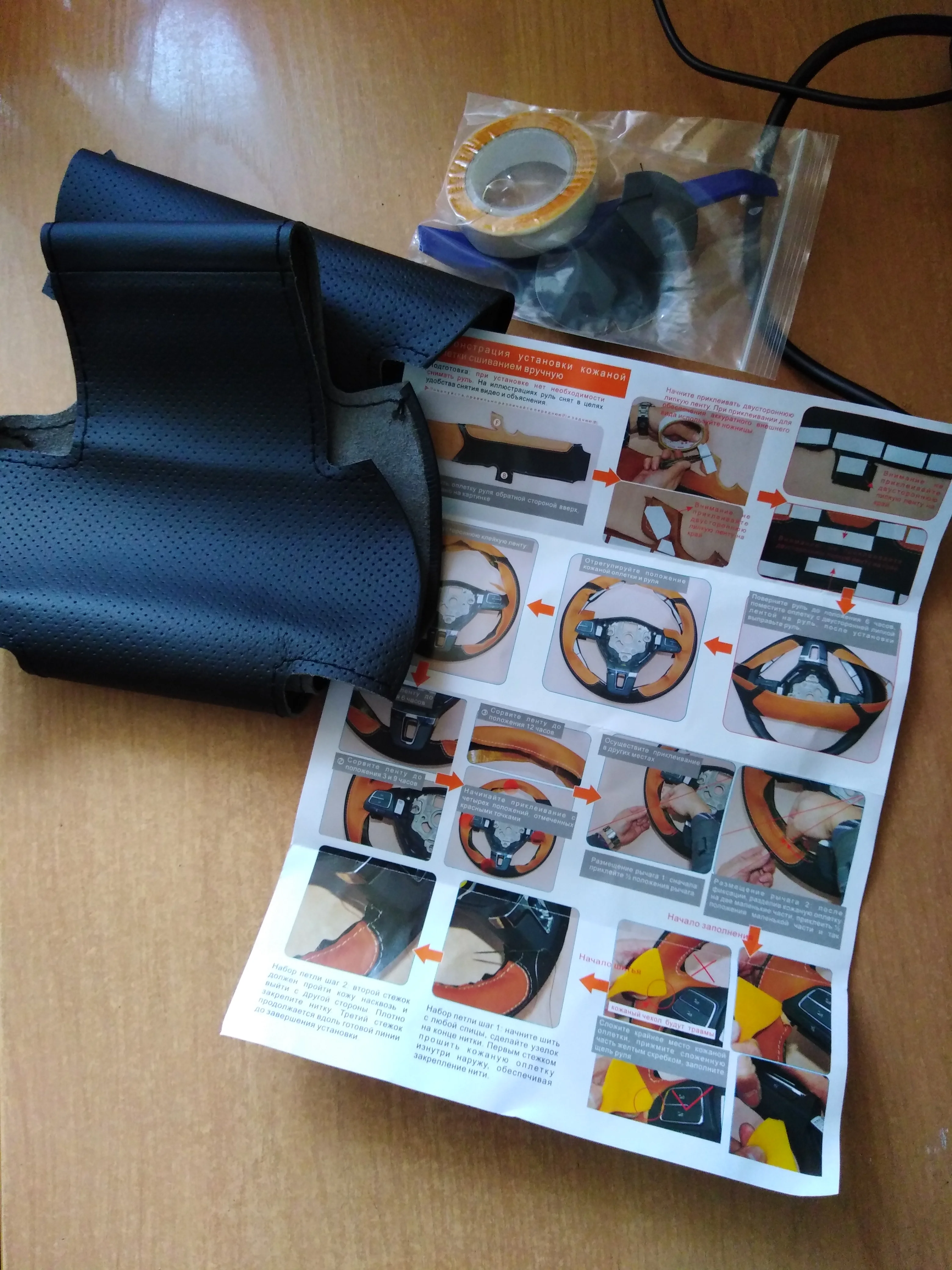 The product looks of very good quality. Stitching is perfect. Thickness is 1.2mm. A little difficult to fit 100% perfect because the material does not stretch. Comes with plenty of sewing line and all that is needed to do the job. Came in 21 days. A lot of work but the result is well worth it. I hope it lasts a few years!