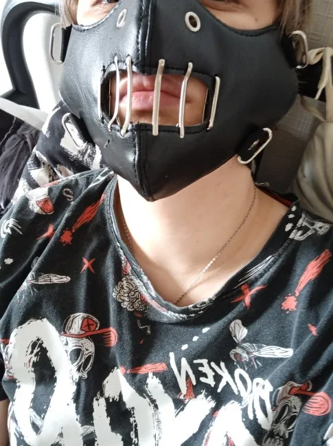 Black PU Leather Unisex Steampunk Necklace Set Gothic Punk Cosplay Mask with Collar Hollow Out Half Face Protective Rock Masks