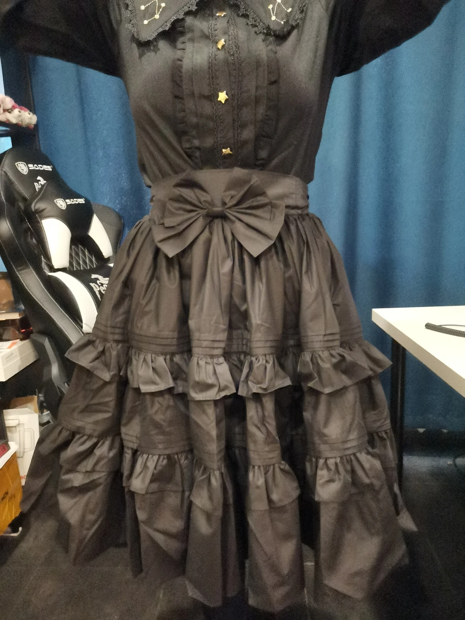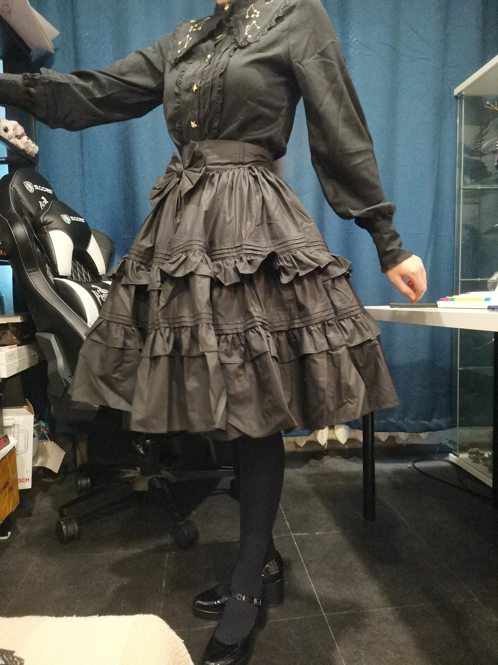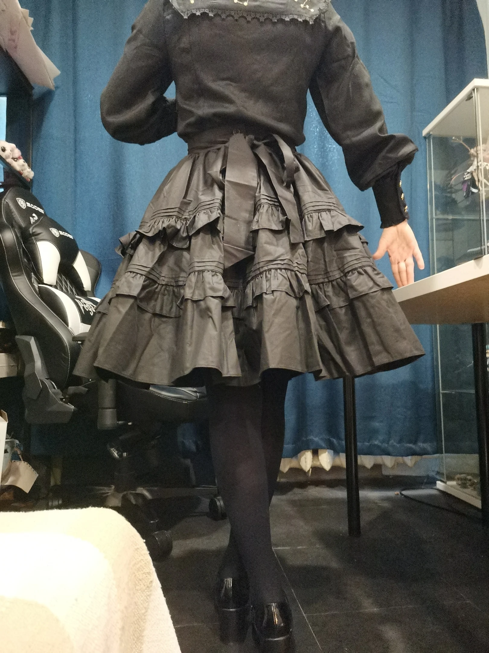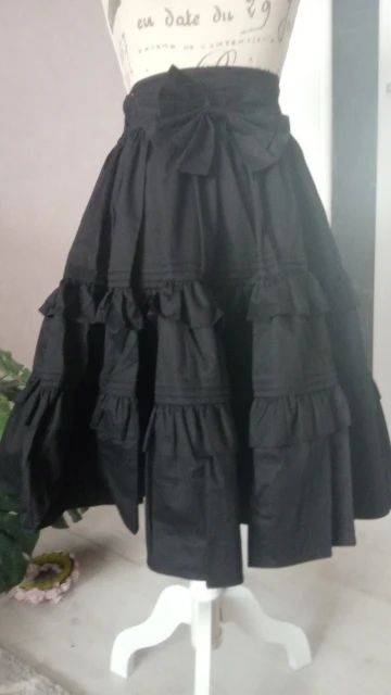Black Vintage A line Skirt Short Lolita Skirt with Layered Ruffles by Lace Garden