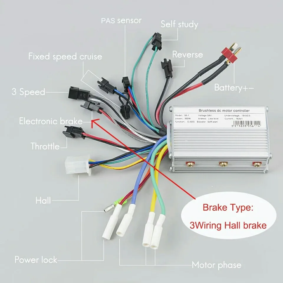 Bldc Controller Electric 48V Brushless Motor Controller Electric Scooter Controller 36V 350W 500W with Hall Brake 24V Ebike