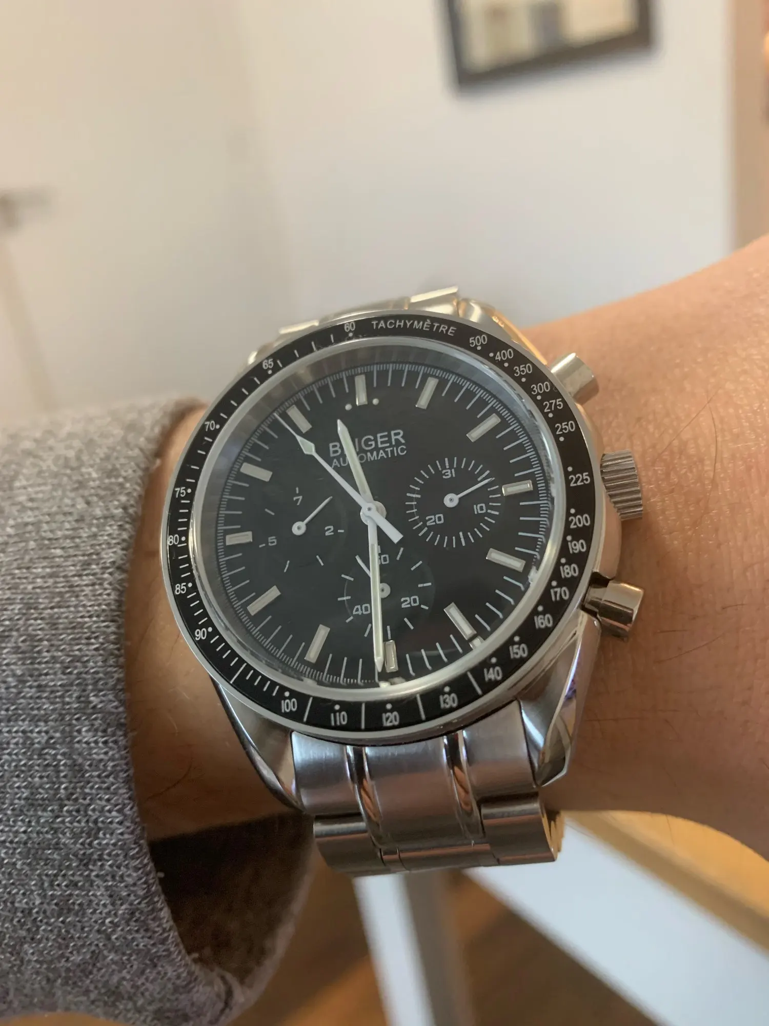 BLIGER Men's Watch Black Dial Mental Strap Date Indicator 40mm Watch Case Popular Wristwatch