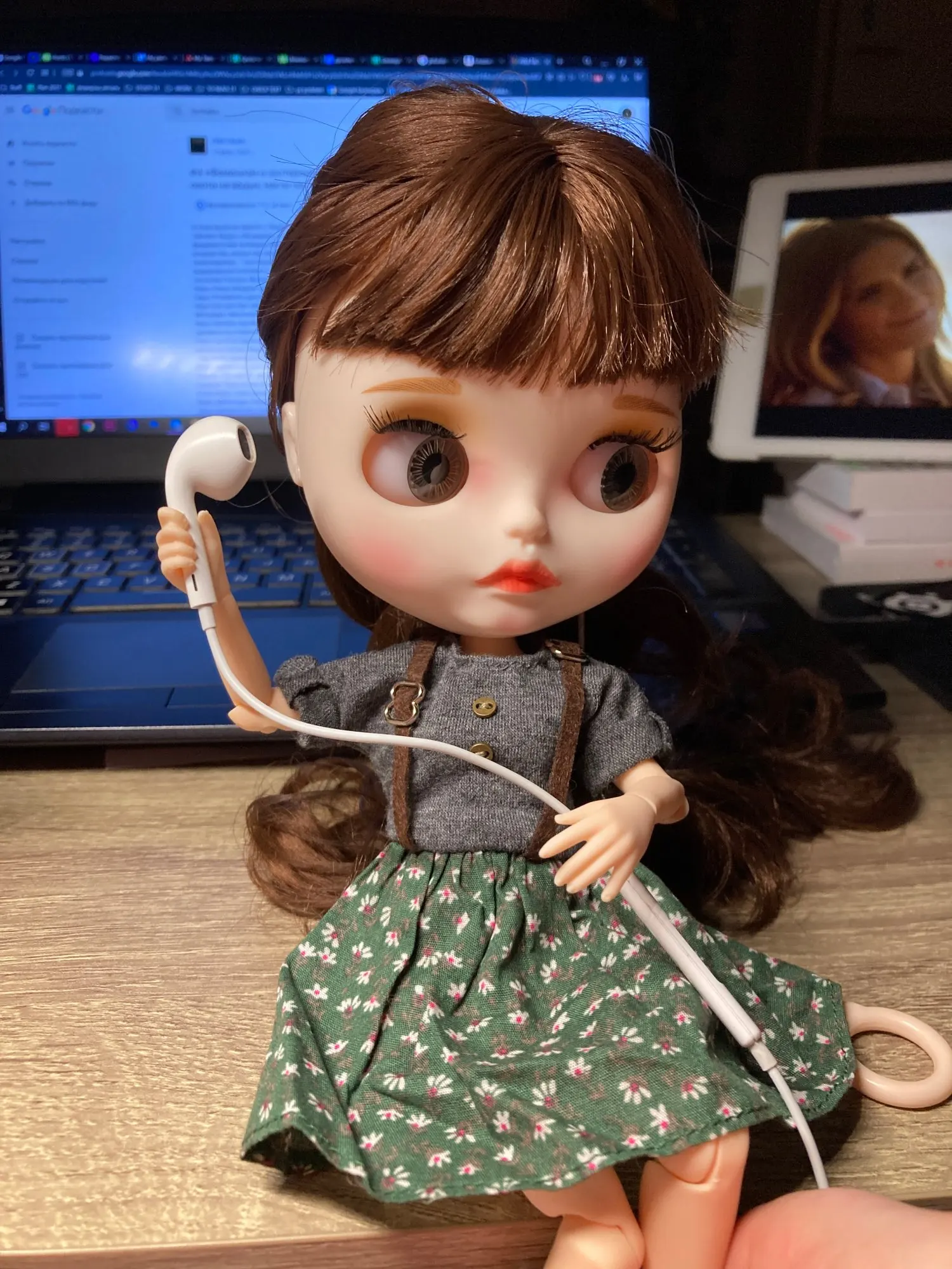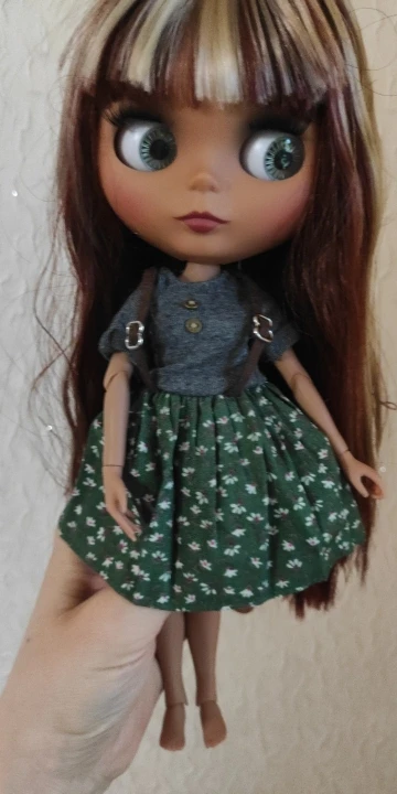 blyth doll icy joint body green gray dress suspender skirt with Button
