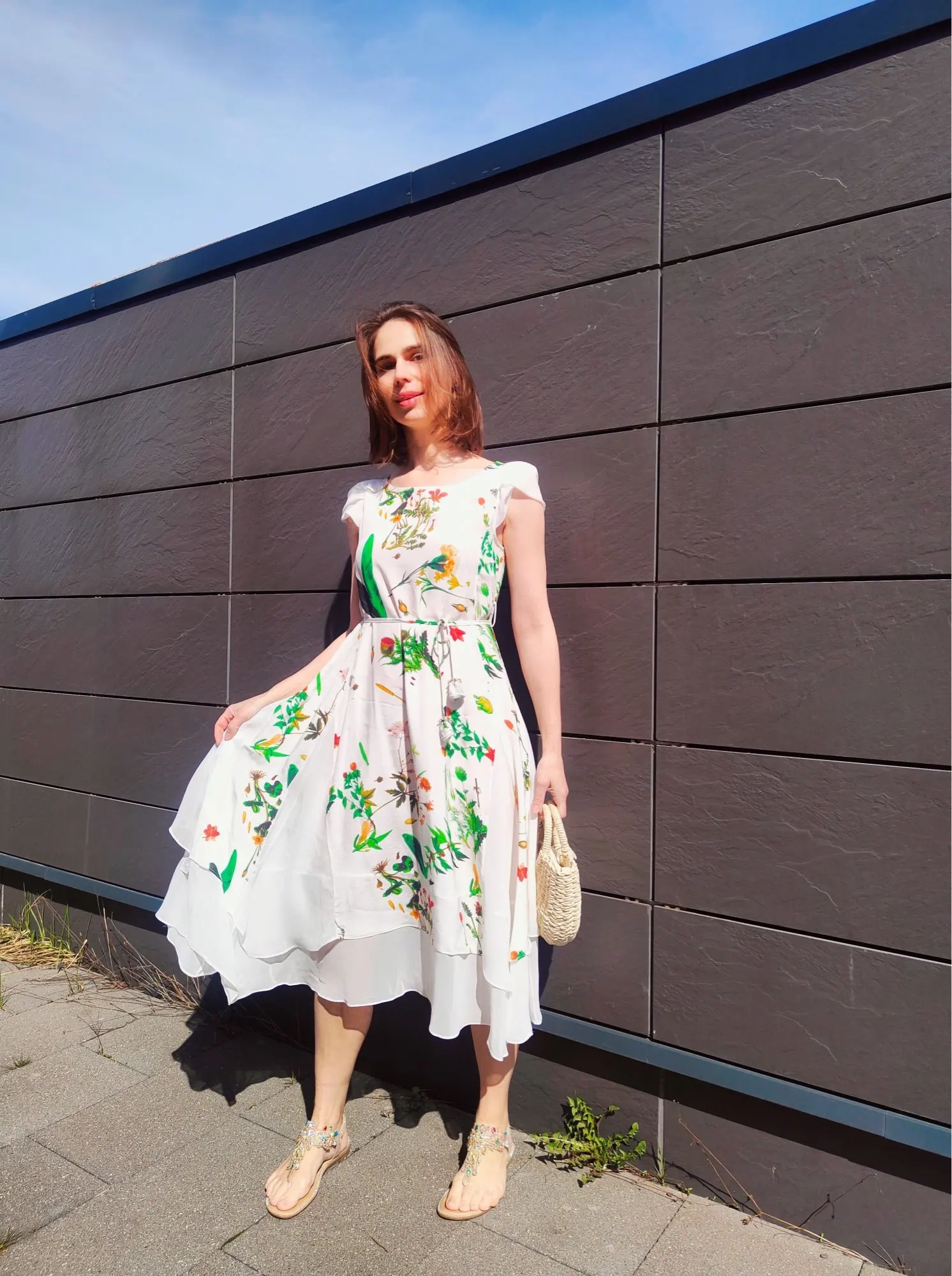 Bogeda Elegant Silk Dress 2022 Summer Casual O-Neck Pastoral Style Dress Women White Print Dresses Free Shipping