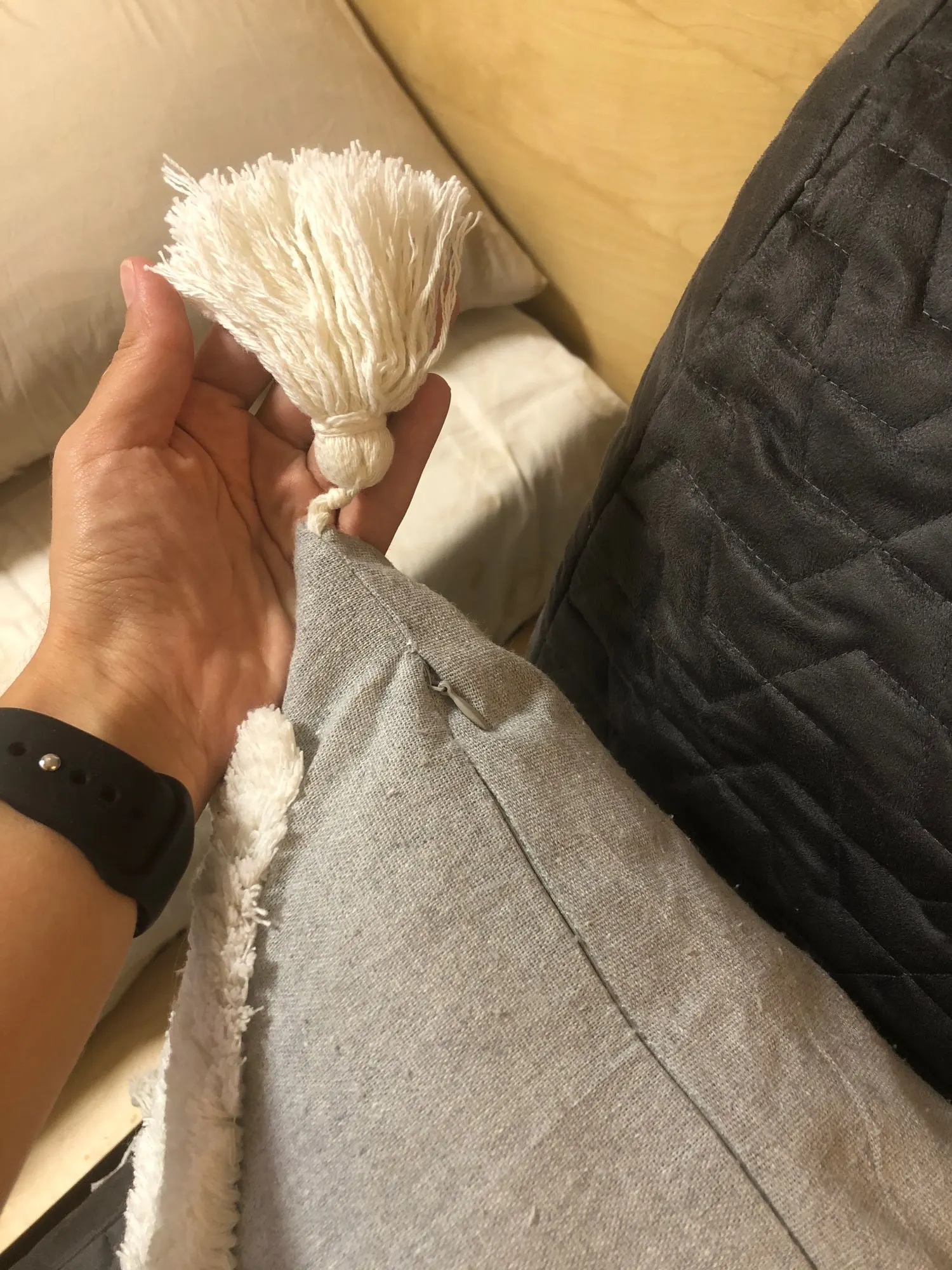 Fast shipping and beautiful cover, but the zipper is not so great. It is very difficult to pull the zipper even without the cushion. I am afraid the fabric will get stuck in the zipper very easily. The seller asked me to give them overall 5 star, I would be lying if I did that.