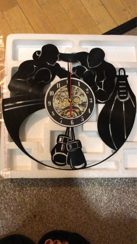 Boxing Home Decor Wall Clock Boxing Gloves Punching Bag Infighters Vinyl Record Wall Clock Fighting Sports Boxers Scrappers Gift