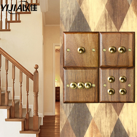Brass wall switch,220V 10A vintage toggle wallpad switch wood panel 1/2/3/4Gang 2Way brass wrench Switch Retro style LightSwitch