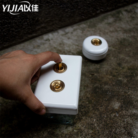 Brass wall toggle switch High Quality Home Improvement Retro Ceramic Knob Switch Light wall switch wallpad Switch for livingroom