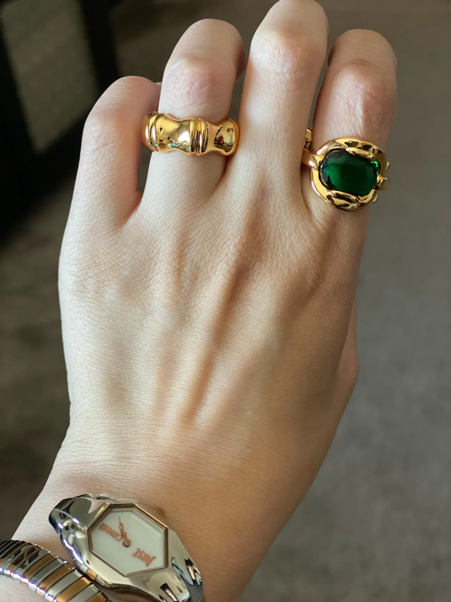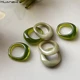 Brass With 18 K Gold Retro Geo Wave Green Stone Rings Women Jewelry Punk T Show Designer Club Cocktail Party Japan Korea Fashion