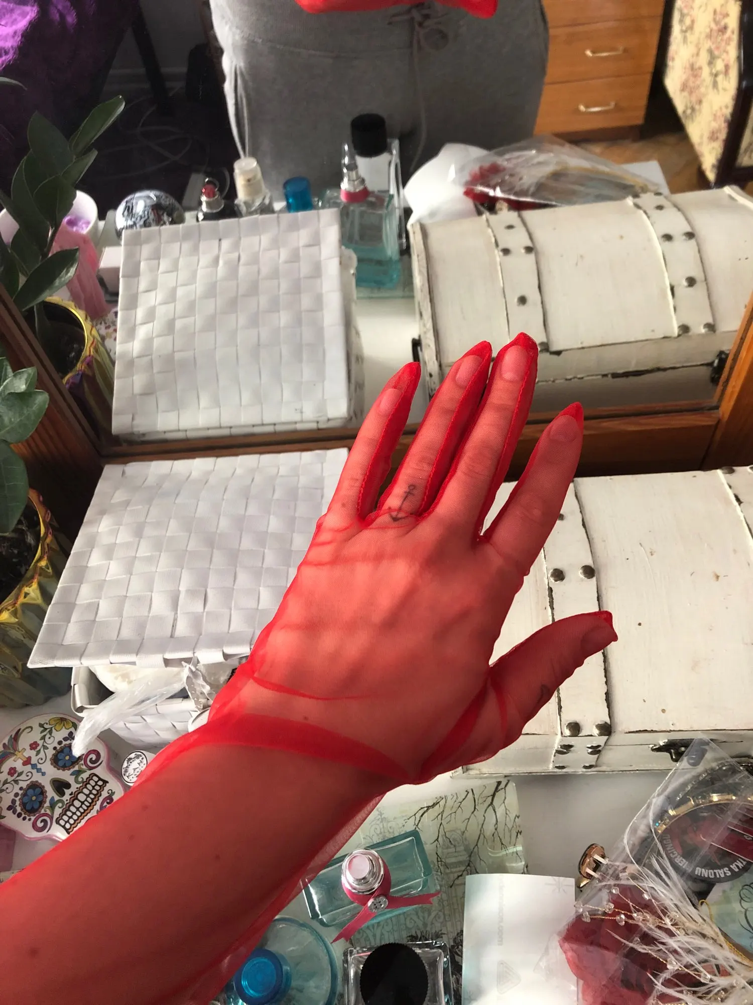 Bride Wedding accessories 55cm sheer Gloves ivory black red pink long Design tulle Transparent Women Gloves 2022 Summer Women