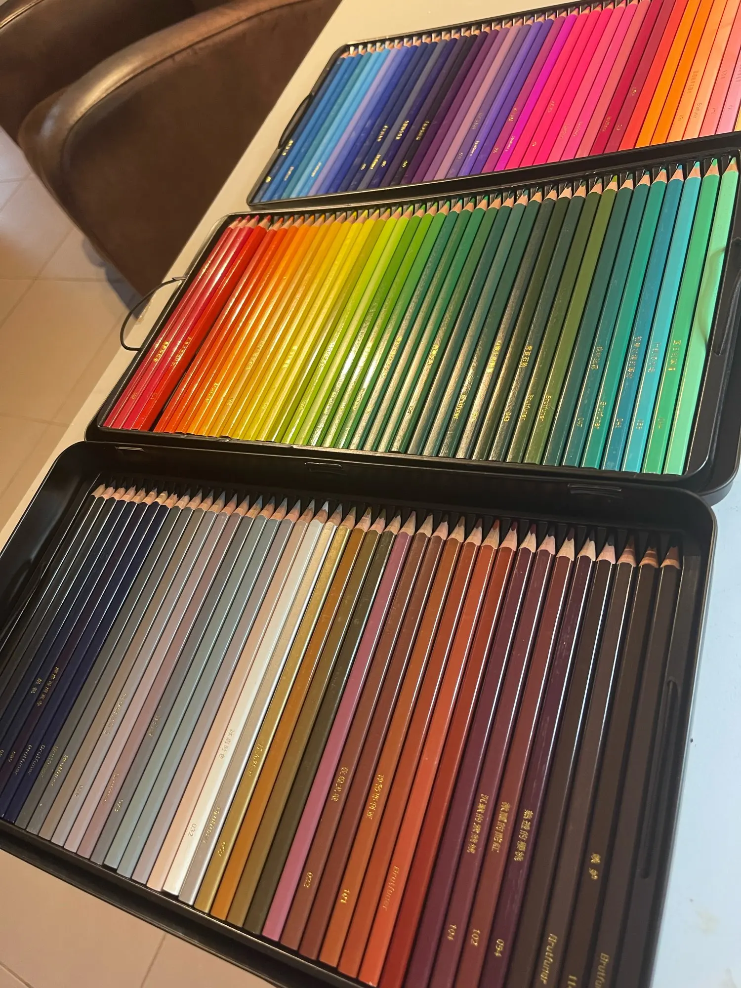 very carefully packed pencils, in a beautiful stylish black box. The contact with the seller was very fast. I am very happy with this purchase! Also it arrived two weeks faster then it was estimated.