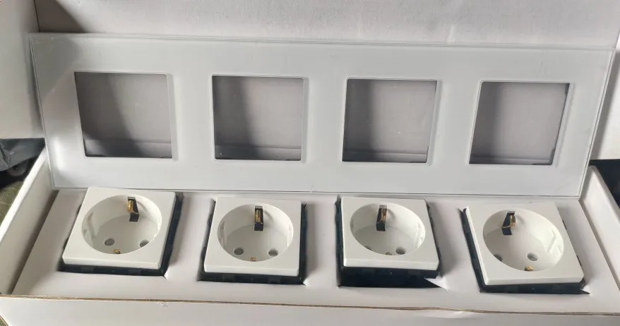 BSEED 4 Outputs EU Standard Power Socket White Black Crystal Glass Panel Electrical EU Socket Plugs 110-240V