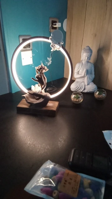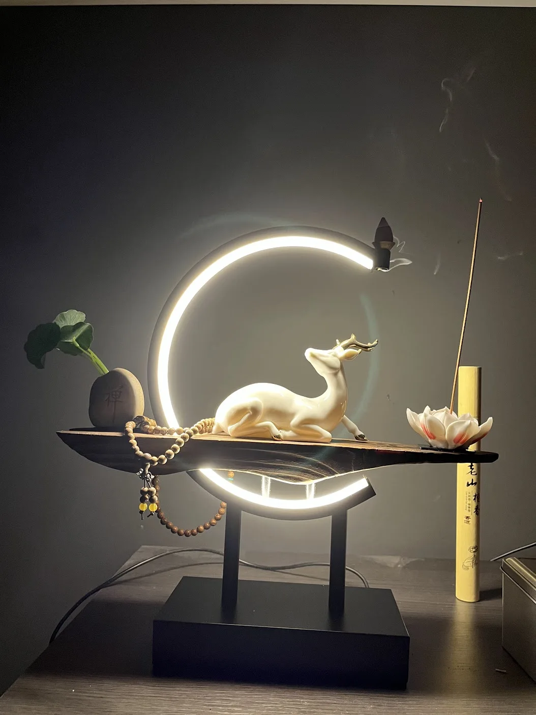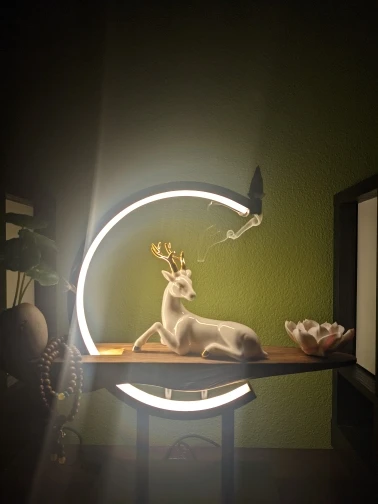 Buddhist Backflow Incense Burner Holder Smoke Waterfall Censer Buddha Lotus White Deer Burner With Lamp Circle Home Decoration