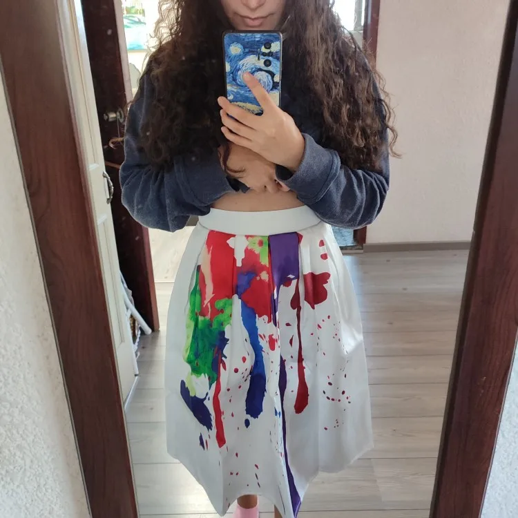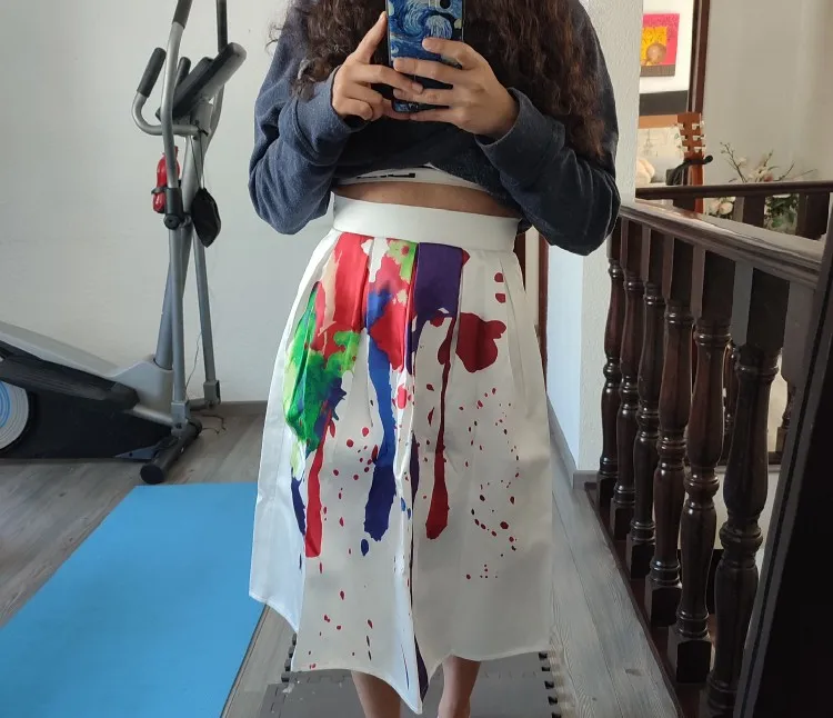 BunniesFairy Brand 2022 Spring Summer New Ladies Elegant Fashion Graffiti Print High Waist White Long Midi Skirt Holiday Wear