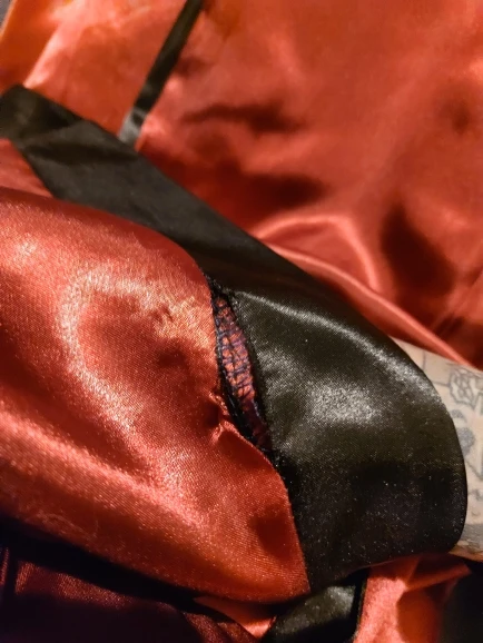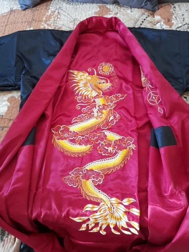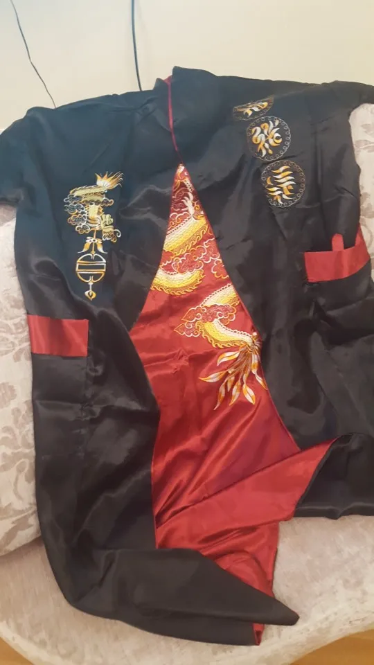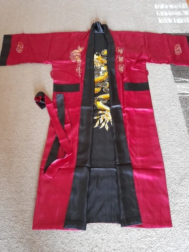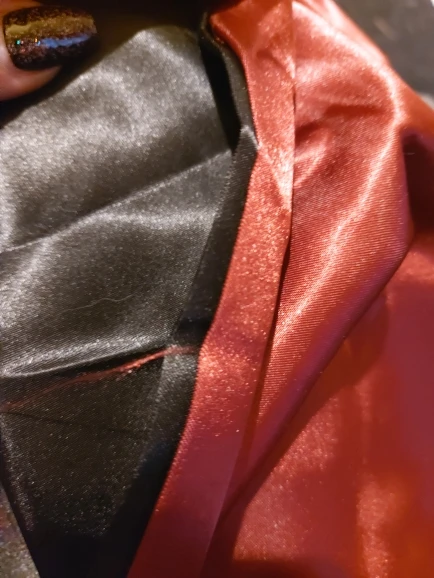 Great product! Sits well and fast, doesn't slip like other satin robes. I particularly like the coller