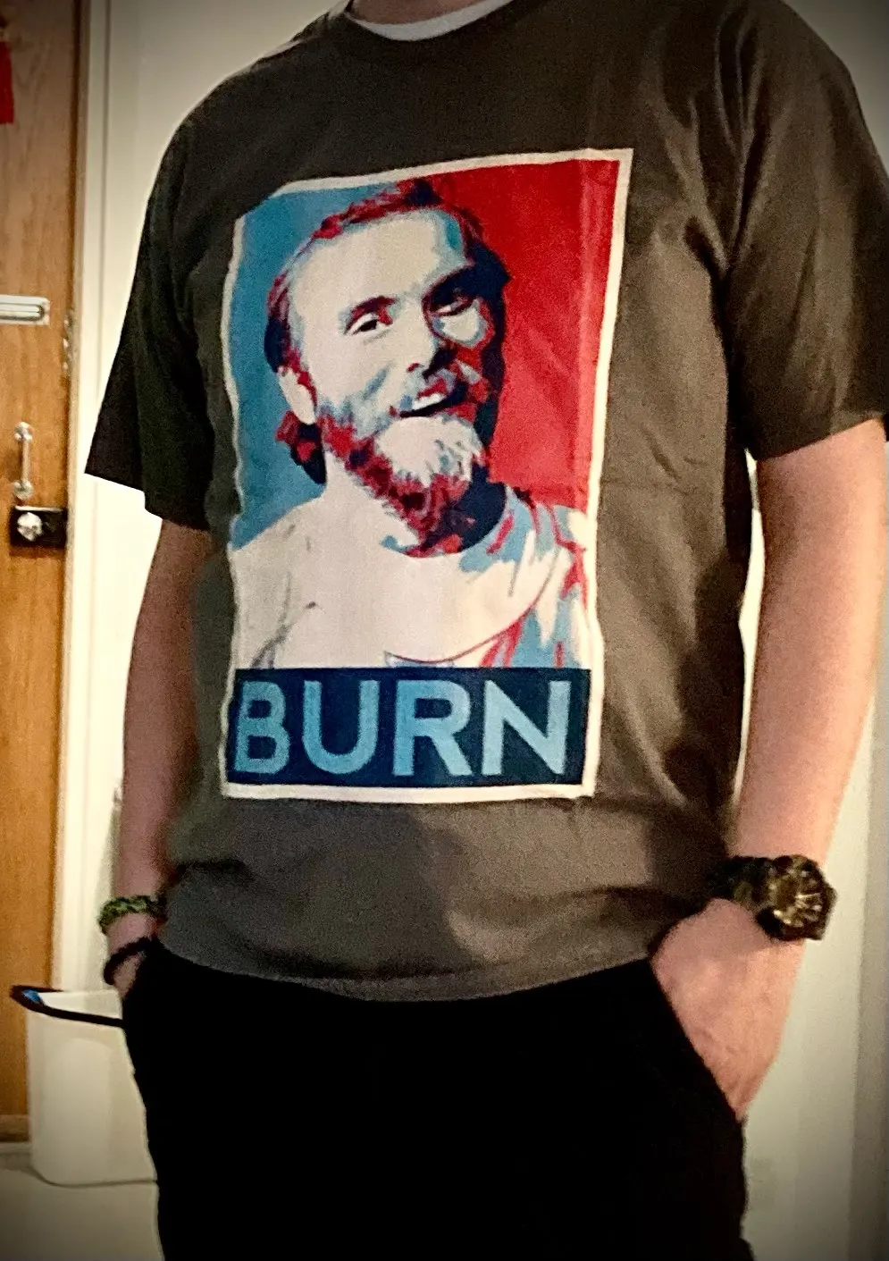 Very nice 100% cotton made in India. Its thick material, has a good weight to it. Varg would be proud to have his face printed on this material!. Fast delivery i will add store to favorite. 6 stars out of 5 ;)