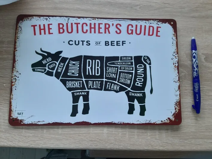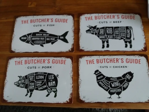 BUTCHER'S GUIDE Vintage Metal Signs Cut Beef Cow Chicken Pork Duck Poster Kitchen Decorative Plates Plaque Wall Stickers N286