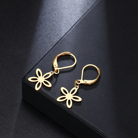 CACANA Polygonal Flower Chic style Earrings For Women Fashion Dangle Stainless Steel Temperament Earring Engagement Jewelry
