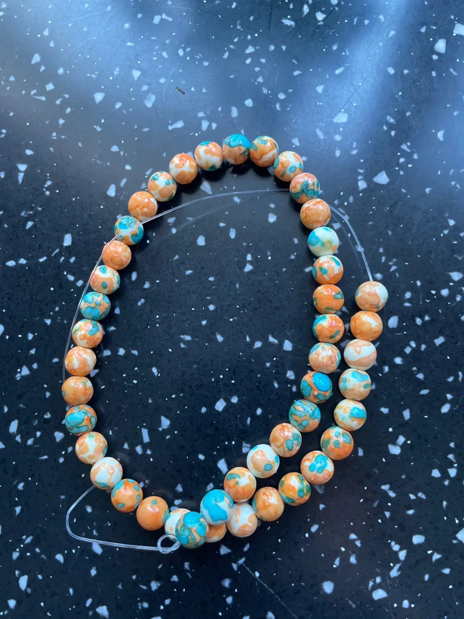 CAMDOE DANLEN Natural Stone Orange Blue Dots Rainbow Stone Round Loose Beads Fit Diy Handmade Charms Spacer Beads Jewelry Making