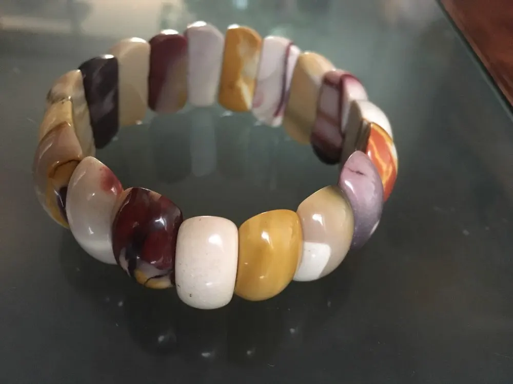 Carnelian Jasp Gold Sand Cherry Quartz Unikate Mookaite Opal Aventurine Rhodonite Women Men Beads Elastic Bracelet 7" WFH336