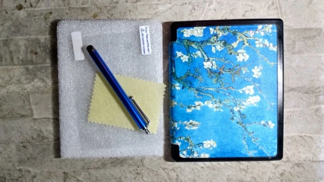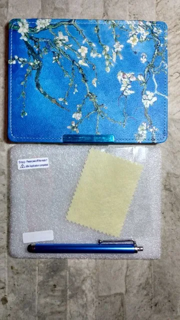 It is a very beautiful cover. Sturdy, with screen protector and a stylus. I love it the part that closes magnetically, even tho the film around it is coming off already.