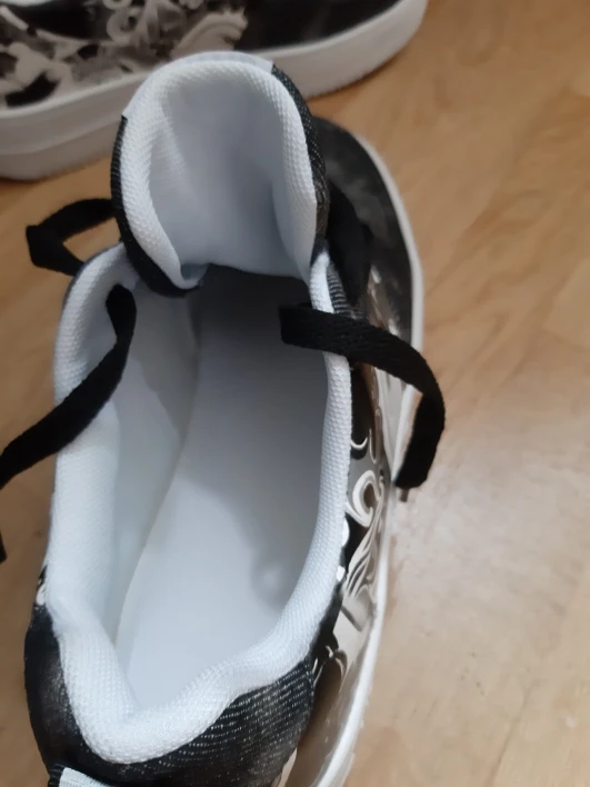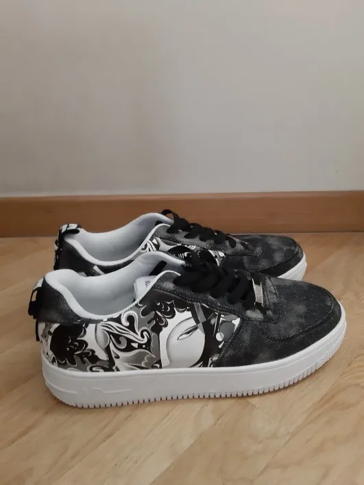 They are bigger, looks like 8.5, it is hard to know, because shoes don't have size written on them. It is hard for legs to breathe because the material is synthetic.