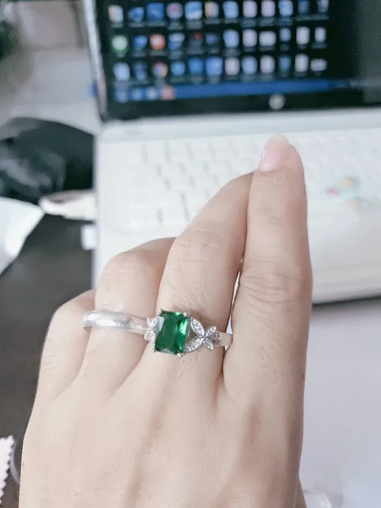 Cellacity 925 Silver Ring With Creative Rectangle Emerald Gemstone silver elegant lady Jewelry adjust size Party Gift Wholesale