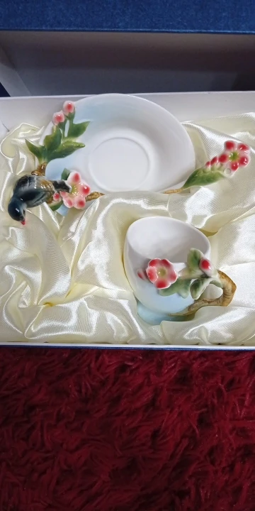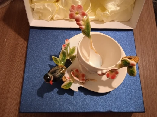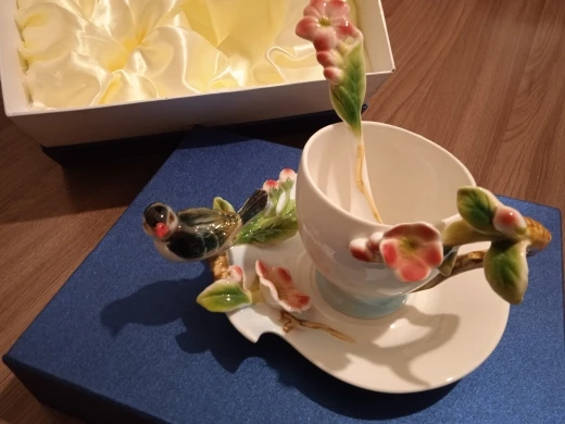 Ceramic Cup Magpies Plum Blossom Enamel color Coffee Cup with Saucer and Spoon European Creative Tea cups tea cup set