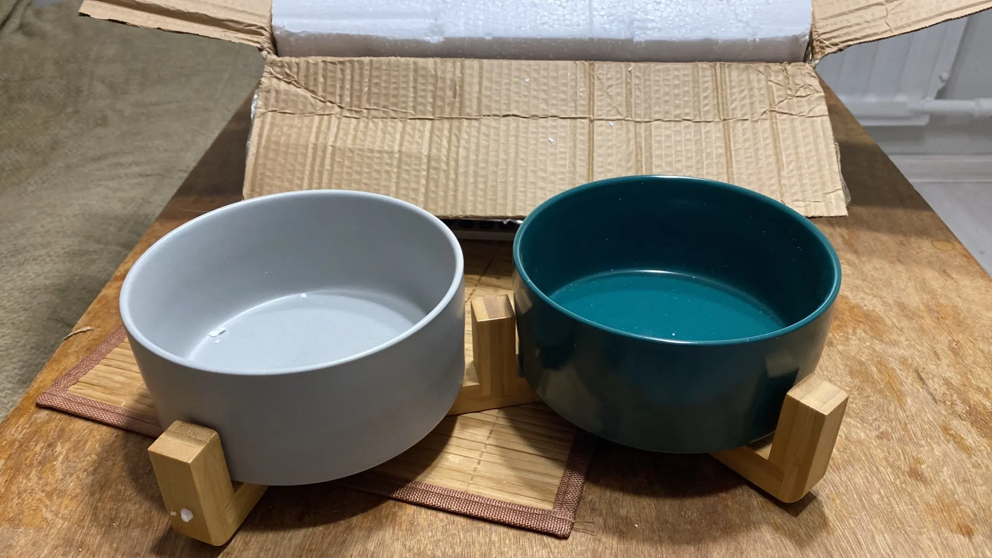 Bowls are great :)! Very carefully packed, all came in perfect condition. White and grey color combination looks beautiful. Cat is happy, and we too :)