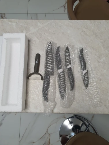 Arrived well packed no knife was broken (which happens often at my place). 6" is same size as 5" with dents in the blade. It is useless but whatever.