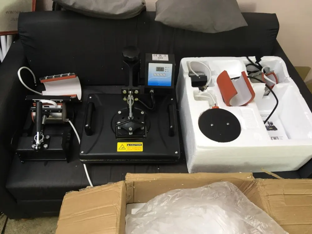 shipping: 5/5 it took whole 10 days for seller to shipped my item and took about 4 days to reach my place. no doubt its premium shipment so theres nothing to worry about. However the styrofoam packages but did not affect the machine. cost: 5/5 5 in 1 heat press machine for this price is ridiculous cheap and very affordable for a guy who want to open a small business. machine: 8/10 The machine works perfectly however there is some small issues with it. first the teflon sheet was loosen and there is a missing screw from the machine. thank god they gave u spare screws inside the box. Sadly, seller said they could provide me free samples but they did not arrive. i dont believe there is any of it. but its ok. ill try to post few pictures after i got some samples to do work with.