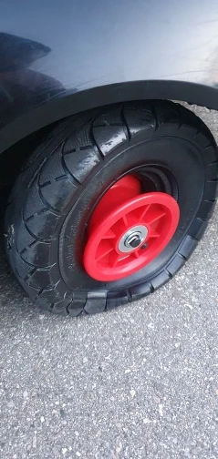 Just as described, obviously they are sent deflated to avoid rupture while in transit. You will need an old fashion pump, the one with the hose and the screw-on fitting to inflate, because the inner-tire fitting is too short and too close to the core of the wheel. Other than that the rubber seems good quality, and the plastic core is very solid.
