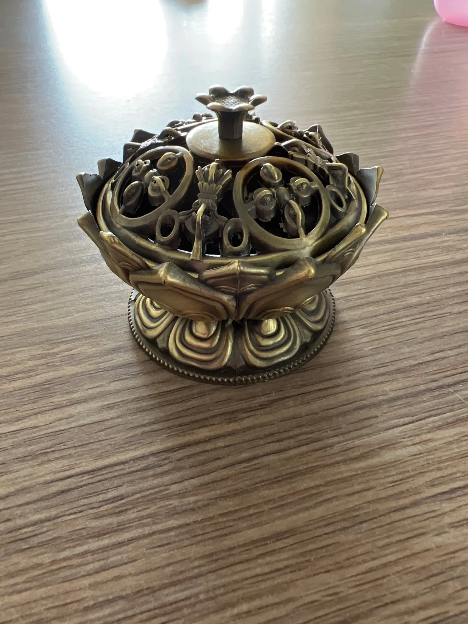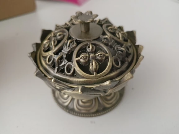 Chinese Buddha Alloy Incense Burner Lotus Flower Incense Holder Handmade Censer for Buddhist Home Office Decoration