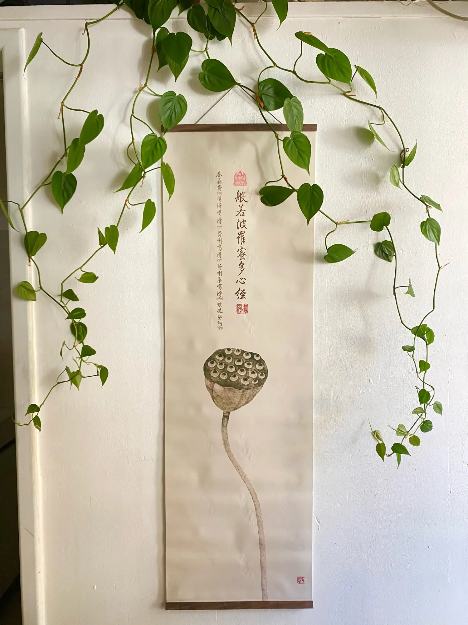 Chinese Canvas and Posters The Heart of The Perfection of Wisdom Canvas Painting Poster Wall Art with Wood Hanging Scrolls