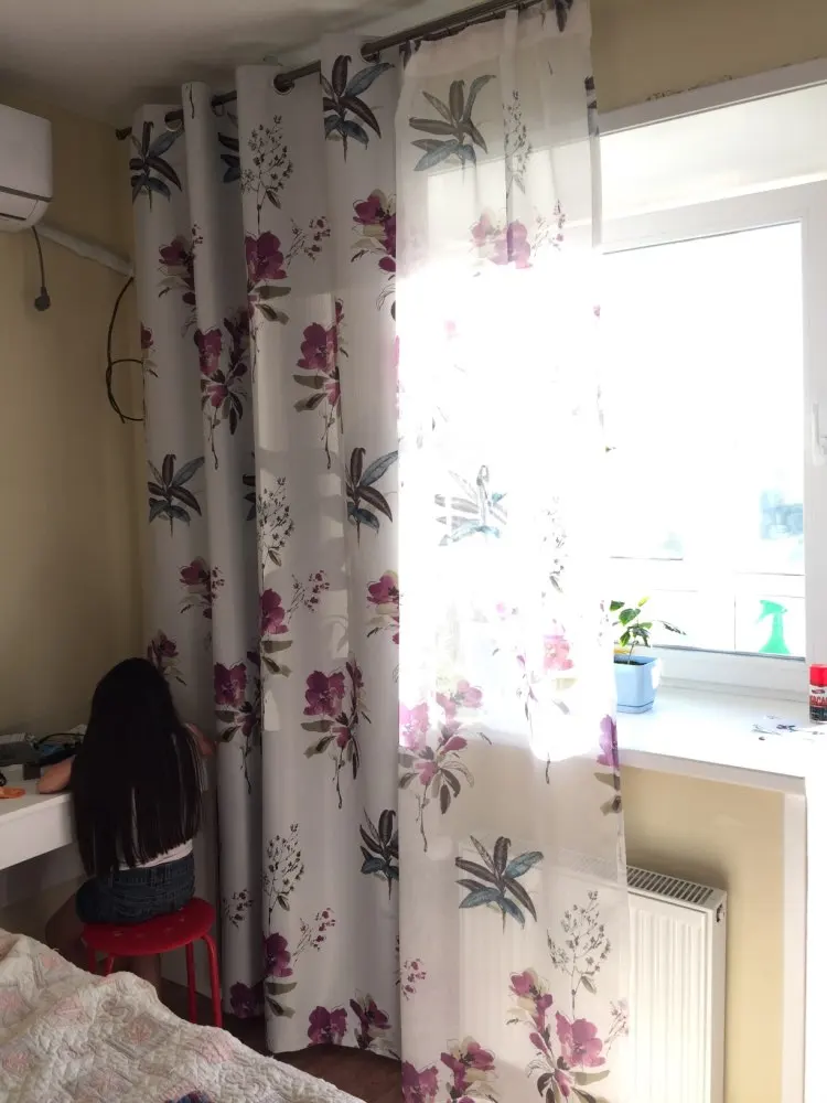 Chinese purple flower blackout curtains for living room bedroom red sheer curtains and tulle on the window floral voile blinds
