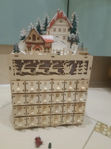 Christmas Wooden Advent Calendar Countdown Decoration 24 Drawers with LED Light