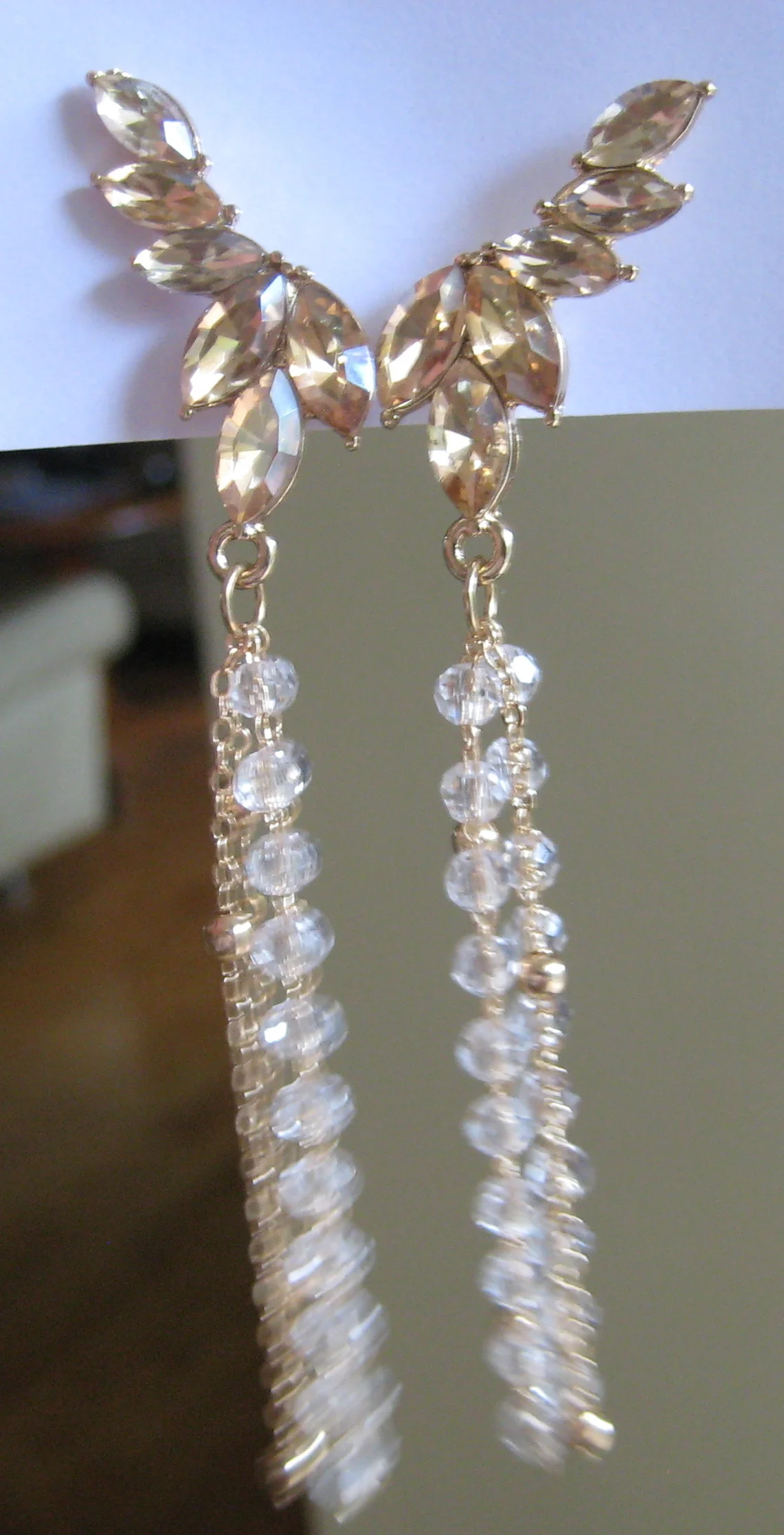 Earrings match product photos! The wing design is beautiful.