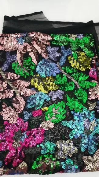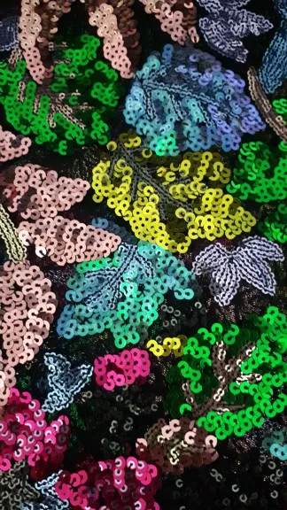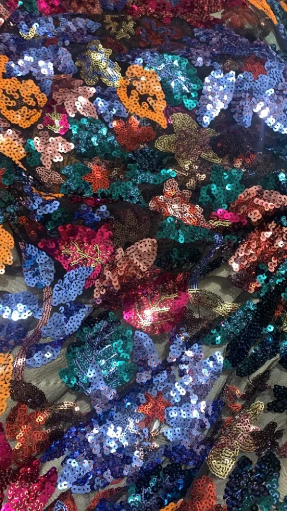 Colorful Plant Pattern Sequin Fabric by the yard, Sequin Mesh, Wide 150cm